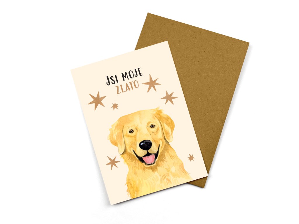 Přáníčko s veselým zlatým retrívrem a milým vzkazem jsi moje zlato. Malá pozornost, která řekne víc než tisíc slov.💛