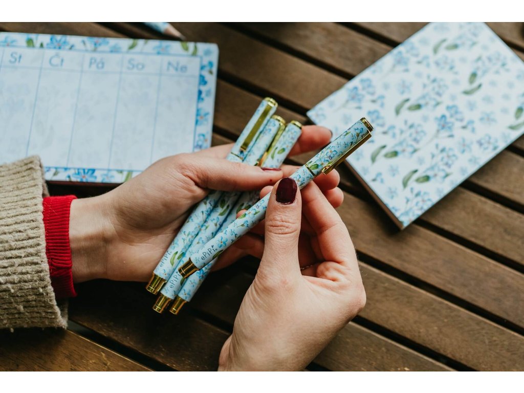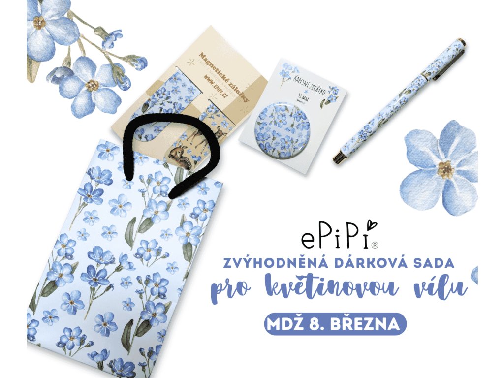 Dárková sada obsahuje kapesní zrcátko s naší autorskou ilustrací pomněnek, magnetické záložky, kovové pero, a to vše dostanete s dárkovou taštičkou ve formátu A6 s perfektně ladícím motivem.