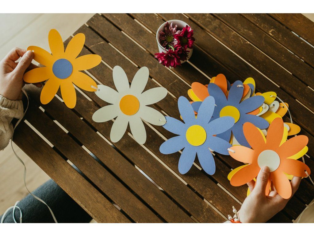 Girlanda se skvěle hodí do dětského pokojíčku i na výzdobu narozenin, oslav nebo jiných slavnostních chvil. Jednotlivé květiny můžete využít i samostatně – třeba jako jmenovky, ozdoby na dárky nebo drobné dekorace.