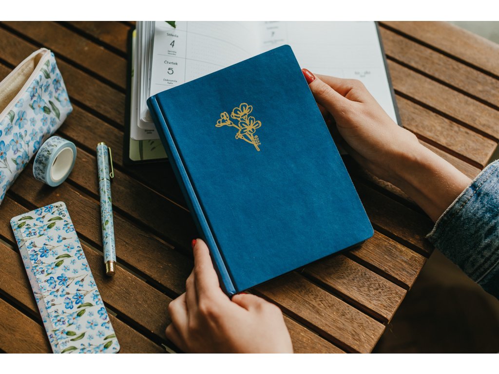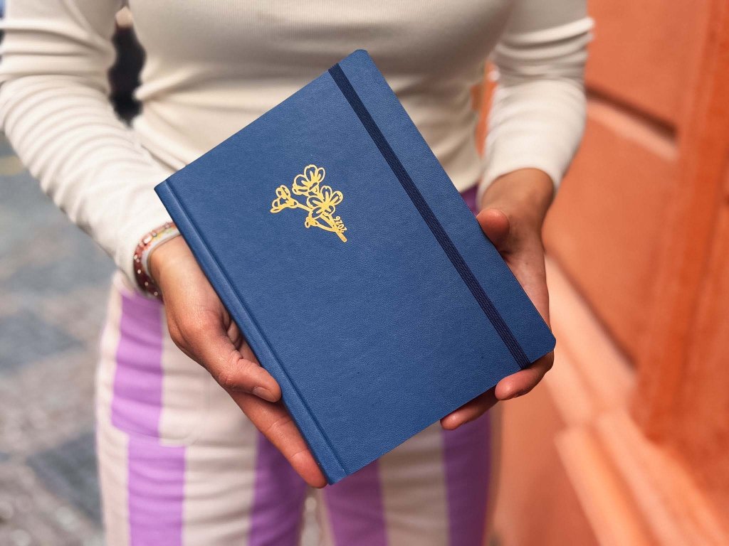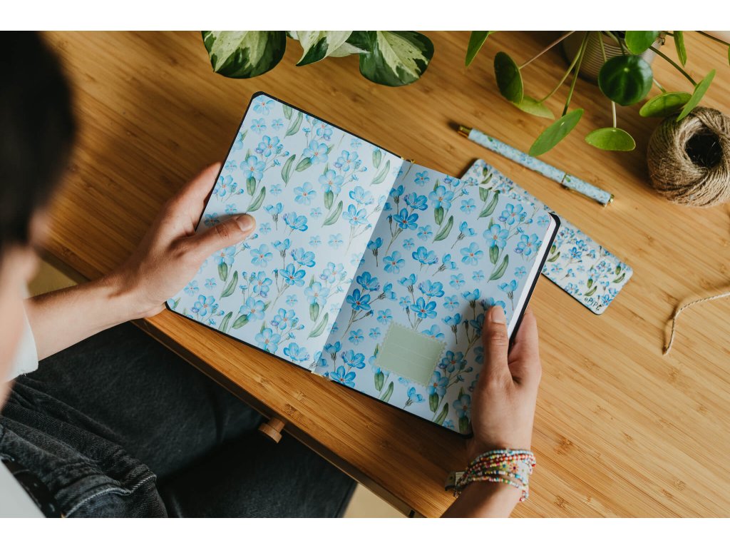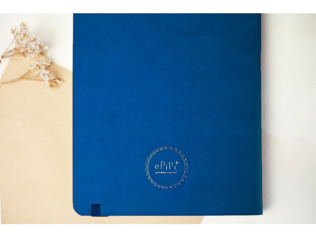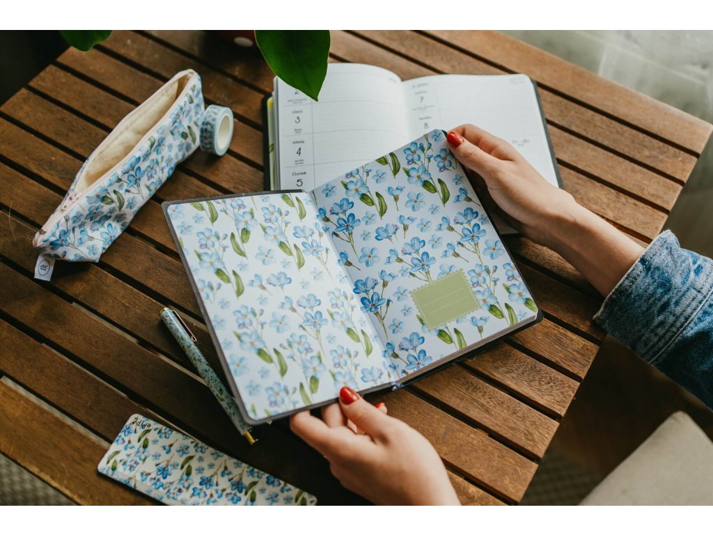 Měkké desky se zaoblenými rohy jsou vyrobeny z kvalitní eko kůže, která je na dotek příjemná a odolná. Diář je opatřen elastickou gumičkou v ladící barvě pro bezpečné zavření. Na přední straně najdeš elegantní zlatou ražbu pomněnky a rokem 2026. Jednoduché desky skvěle doplňuje ilustrovaná předsádka s pomněnkovým motivem. Velikost diáře je praktická a skladná, díky malému rozměru se vám diář vejde i do menší tašky nebo batohu a můžete jej mít neustále u sebe pro rychlé zapisování.