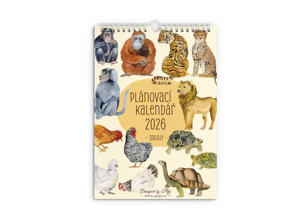 Kalendář na rok 2026 má celkem 14 listů (12 měsíců + titulní strana a zadní kartón), které jsou spojené bílou kroužkovou kalendářovou vazbou s očkem na zavěšení. Po každém měsíci se list pouze přetočí na konec.