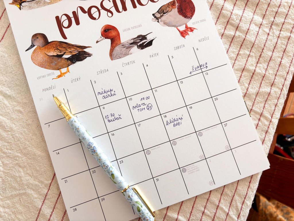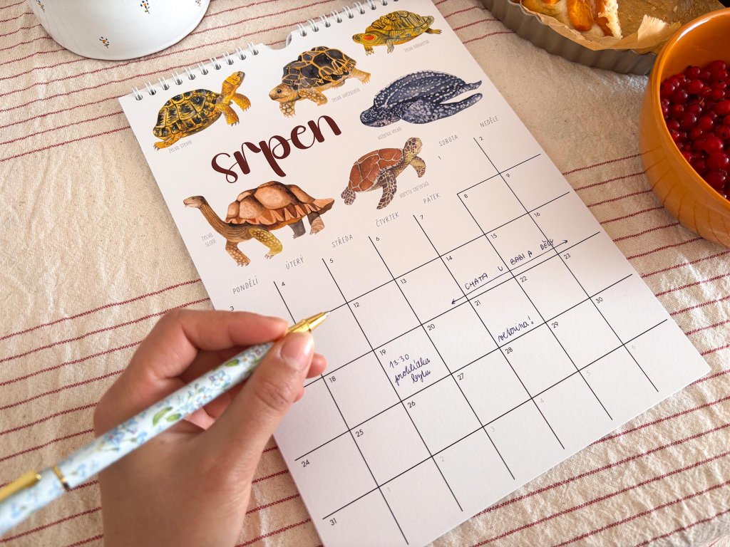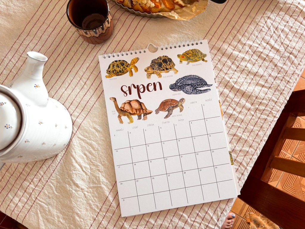 Všechny ilustrace v kalendáři jsou malované akvarelovými barvami a poté kvalitně natištěné na pevný recyklovaný papír.