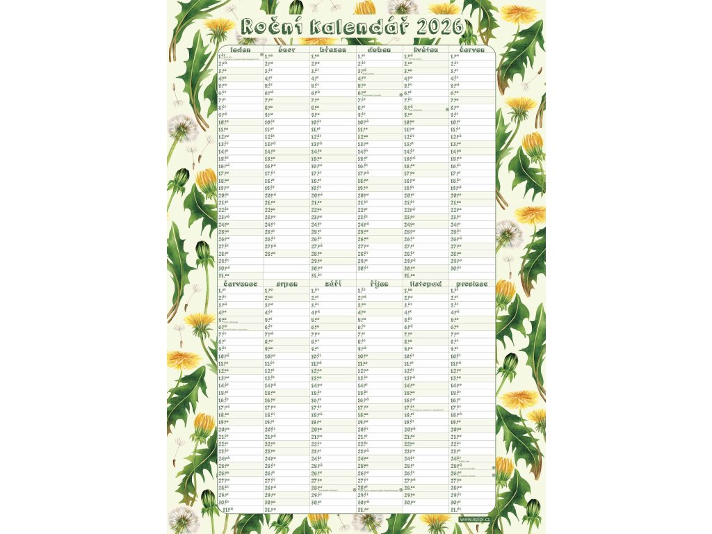 Roční kalendář 2026 - Pampelišky