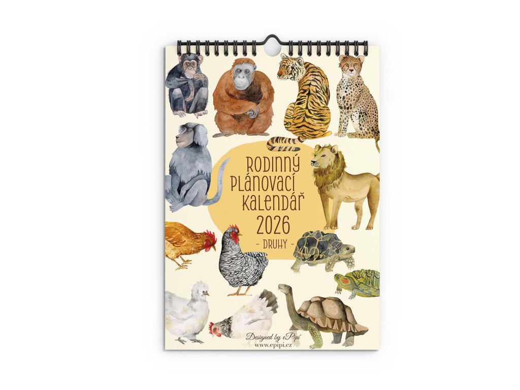 Kalendář na rok 2026 má celkem 14 listů (12 měsíců + titulní strana a zadní kartón), které jsou spojené kroužkovou kalendářovou vazbou. Po každém měsíci se list pouze přetočí na konec.