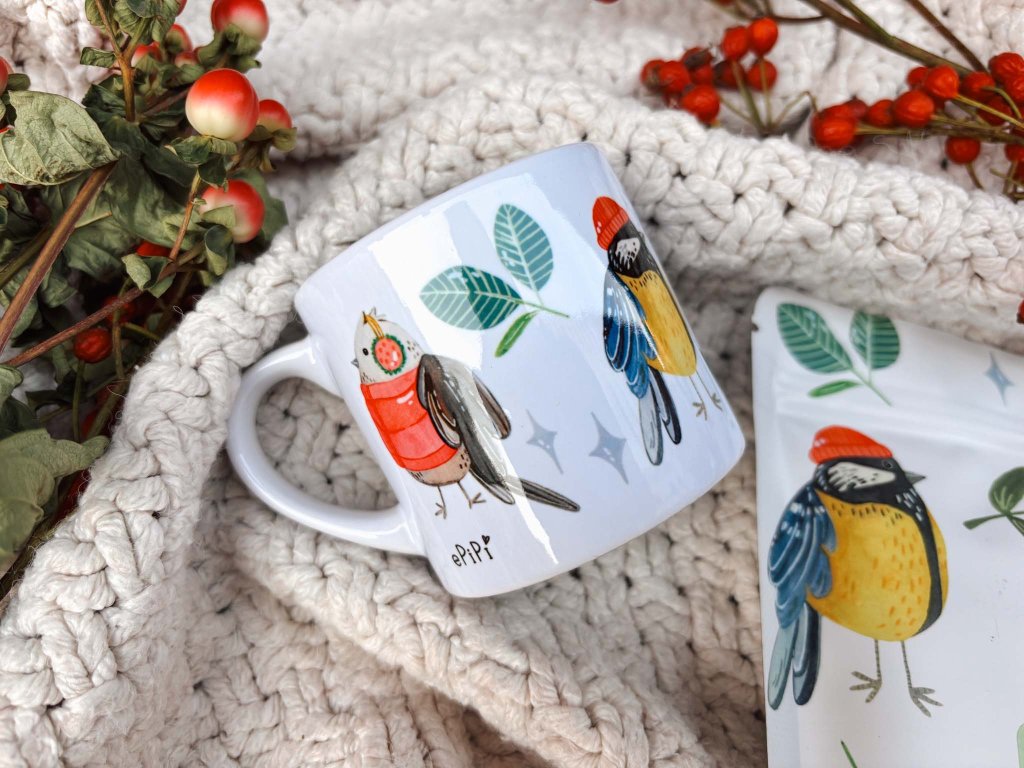 Keramický hrnek zdobí naše autorská ilustrace s ptáčky, která byla v originále malovaná akvarelem a pastelkami.