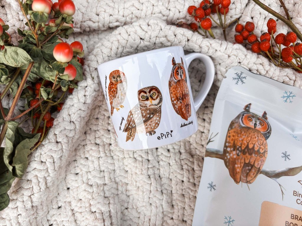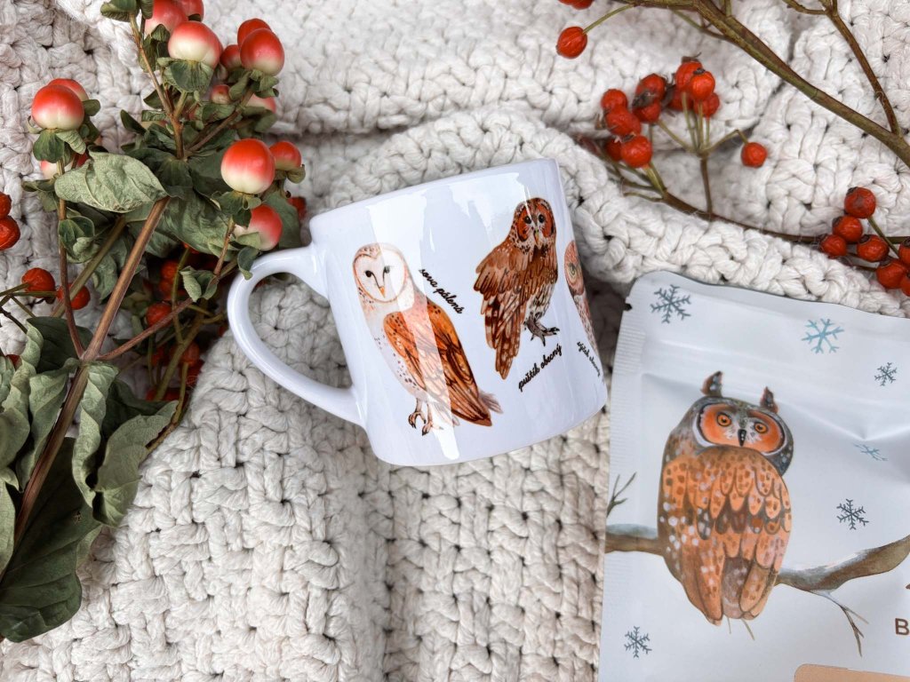 Keramický hrnek zdobí naše autorská ilustrace sov, která byla v originále malovaná akvarelem a pastelkami.