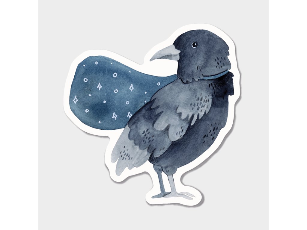 Halloweenská samolepka s autorskou ilustrací, oříznutá ve tvaru čarodějné vrány. Samolepka je vyrobena z kvalitního PVC materiálu a je opatřena matnou laminací. Díky laminaci je samolepka vysoce odolná vůči, vodě, vlhkosti, chemikáliím, povětrnostním vlivům, slunečnímu záření, otěru, abrazi a roztržení. Ideální k dekorování jakéhokoliv povrchu - lze ji nalepit nejen do zápisníků a diářů, ale také například na telefon nebo laptop, případně je vhodná i pro dlouhodobé venkovní použití (na auto, kufr, apod.).