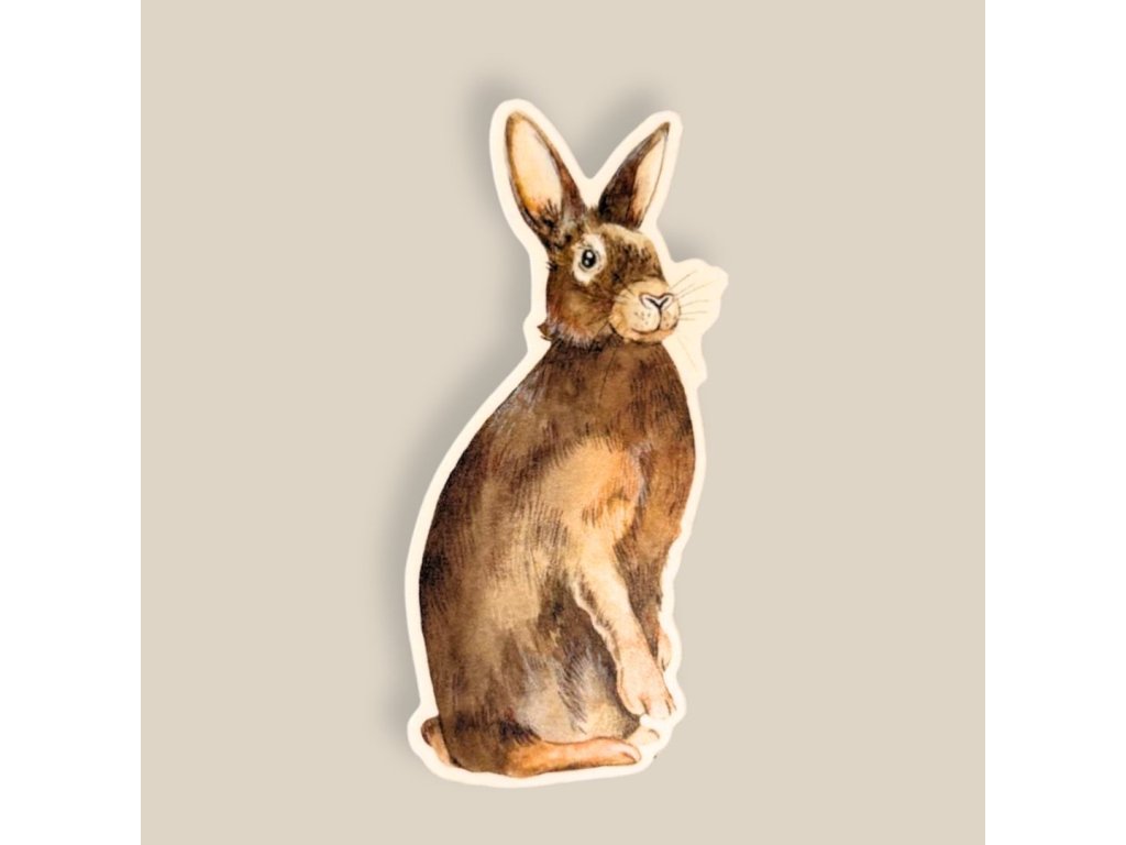 Vinylová samolepka s autorskou ilustrací, oříznutá ve tvaru zajíce. Samolepka je vyrobena z kvalitního PVC materiálu a je opatřena matnou laminací. Díky laminaci je samolepka vysoce odolná vůči, vodě, vlhkosti, chemikáliím, povětrnostním vlivům, slunečnímu záření, otěru, abrazi a roztržení. Ideální k dekorování jakéhokoliv povrchu - lze ji nalepit nejen do zápisníků a diářů, ale také například na telefon nebo laptop, případně je vhodná i pro dlouhodobé venkovní použití (na auto, kufr, apod.).