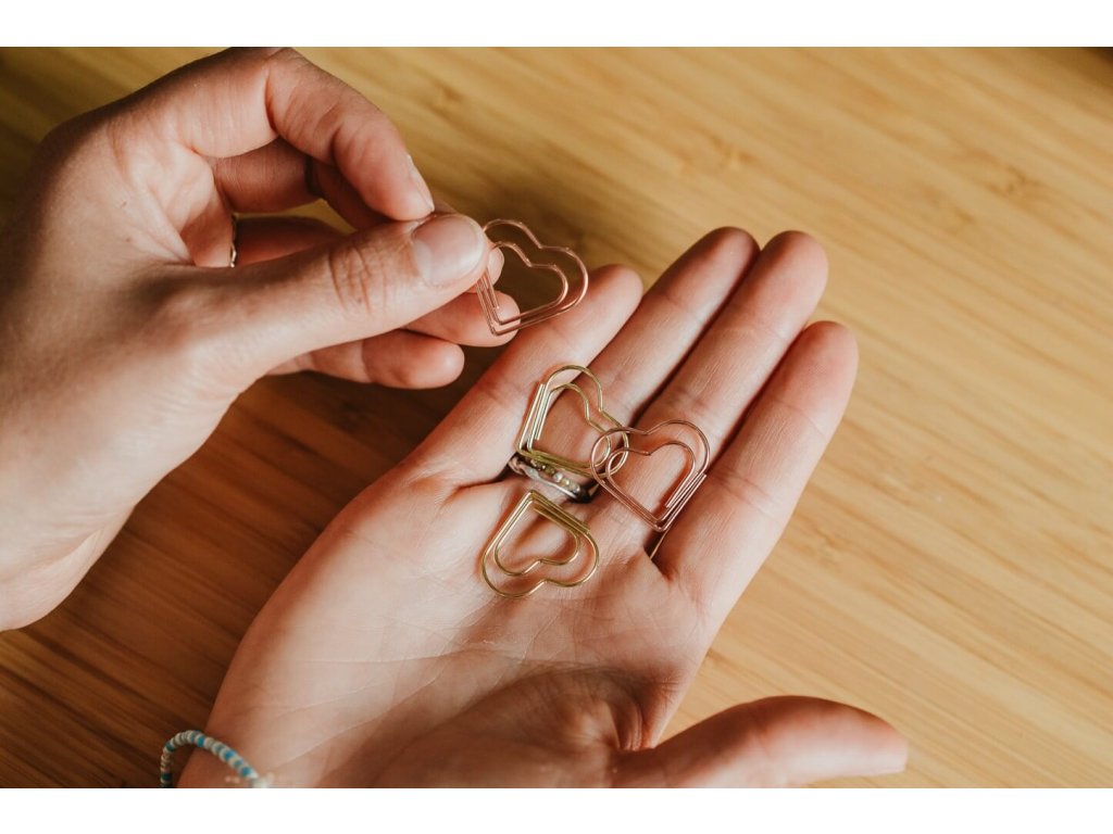 Kancelářská sponka ve tvaru sdrce ve dvou variantách (rose gold a zlatá barva) je velmi praktickým a stylovým pomocníkem v práci i ve škole. Kromě klasického využití na spojení více listů papíru je vhodná také jako záložka.