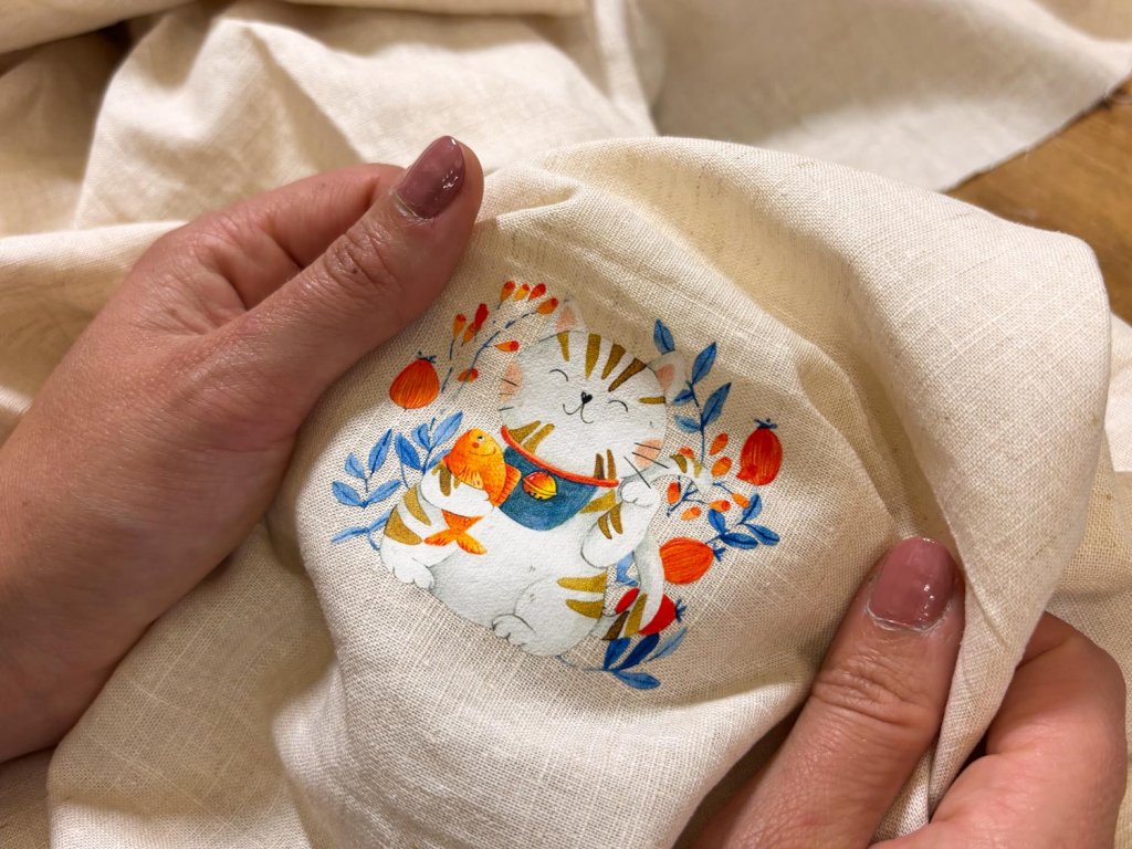 Nažehlovačka s ilustrací japonské kočičky Maneki Neko během pár minut promění obyčejné tričko, látkovou tašku nebo třeba batoh v originální kousek.