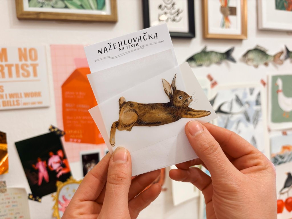 Nažehlovačka s ilustrací zajíce během pár minut promění obyčejné tričko, látkovou tašku nebo třeba batoh v originální kousek.