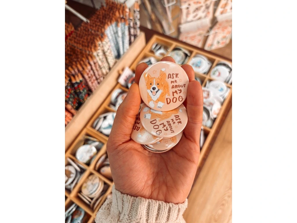 Placka, která je pozvánkou k rozhovoru o tom nejdůležitějším – o tvém psím parťákovi. Rozzáří klopu kabátu nebo skvěle ozdobí batoh či tašku.