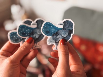 Odolná laminovaná dekorativní samolepka s motivem vrány. Rozměr 5 x 4,5 cm, PVC materiál. Cena za 1 kus.