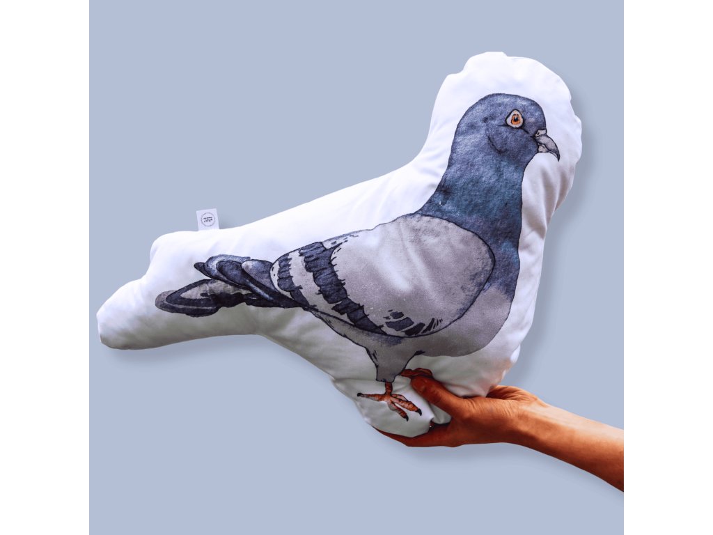 Dekorativní polštářek pro milovníky holubů nebo městské srdcaře. Polštář je potištěn oboustranně a je obšitý do tvaru natištěné ilustrace. Výplň polštáře je z dutého vlákna, které je antistatické a antibakteriální. Polštář není rozepínací, výplň tedy není možné vyjmout, i přes to jej ale můžete vyprat na 30° bez použití aviváže, tvar ani tisk by se po vyprání neměl změnit.