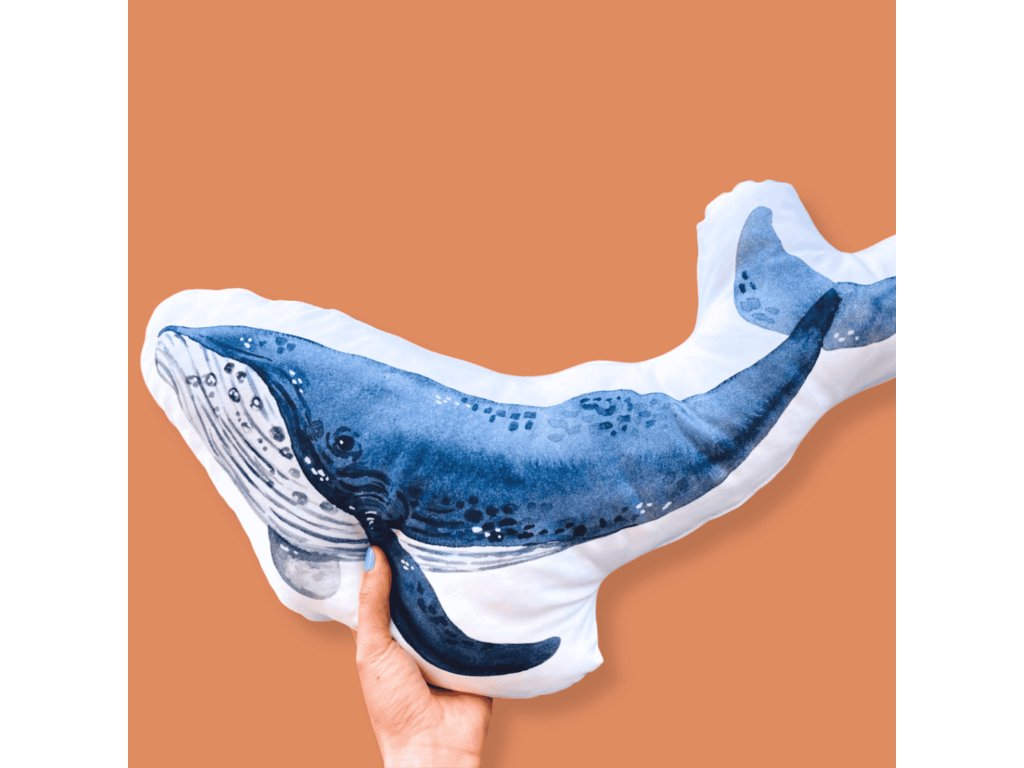 Dekorativní polštářek pro milovníky velryb. Polštář je potištěn oboustranně a je obšitý do tvaru natištěné ilustrace. Výplň polštáře je z dutého vlákna, které je antistatické a antibakteriální. Polštář není rozepínací, výplň tedy není možné vyjmout, i přes to jej ale můžete vyprat na 30° bez použití aviváže, tvar ani tisk by se po vyprání neměl změnit.