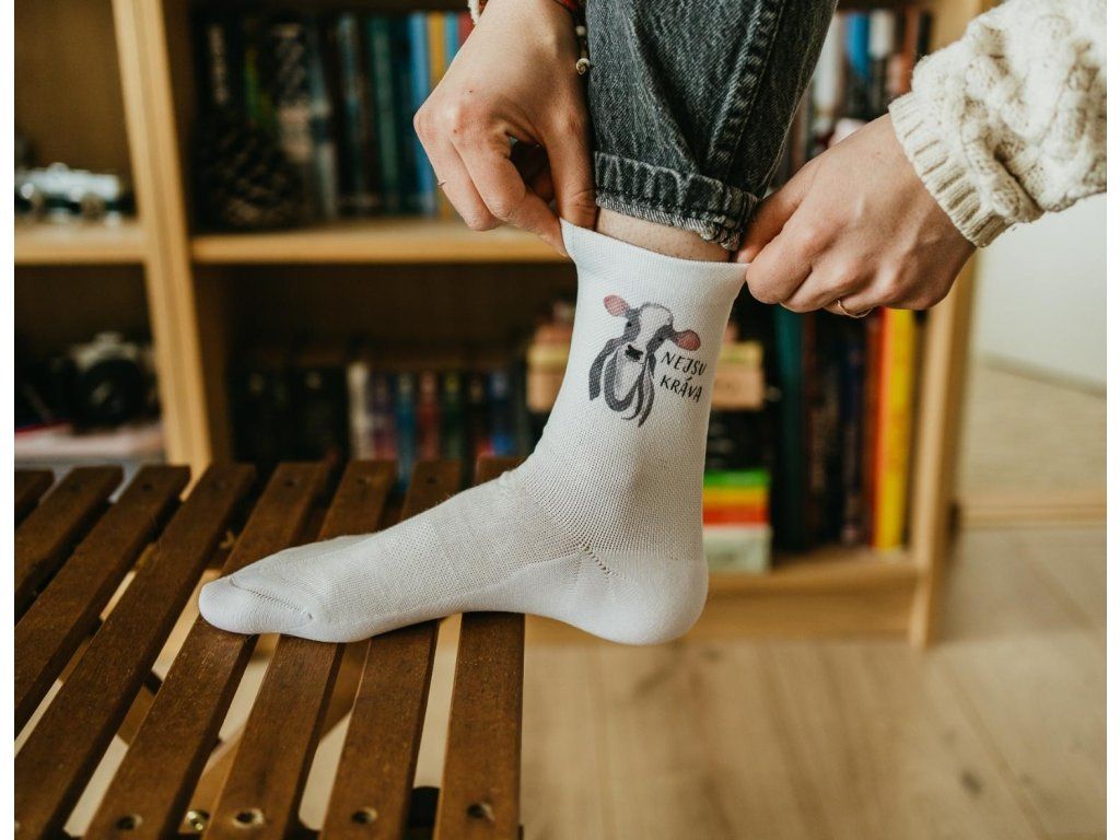 Funkční ponožky od české značky Tlapy, které zdobí náš autorský motiv s krávou. Ponožky jsou perfektní na sportovní aktivity i běžné denní nošení. Mají antibakteriální vlastnosti, nezapáchají a jsou prodyšné. V chodidle a špičce mají prodyšnou přízi Drytex antibakterial, která dobře odvádí pot a udrží chodidlo v prodyšném prostředí.