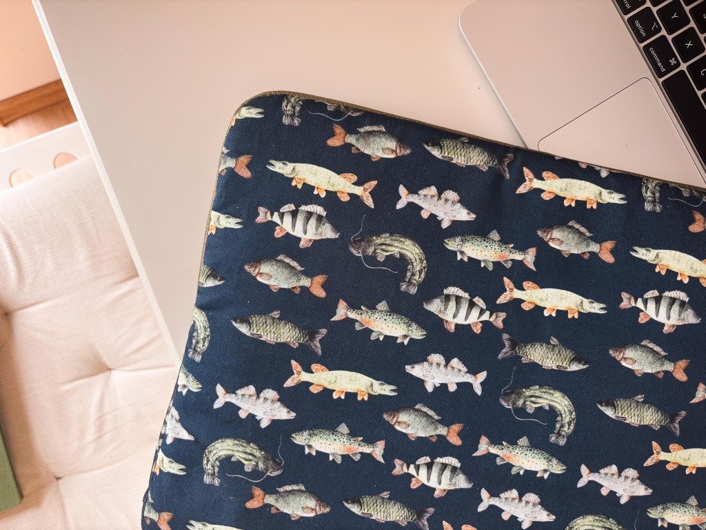 Pouzdro na notebook s potiskem českých druhů ryb - naší nejoblíbenější kolekce. Vnitřní rozměr pouzdra je 34 x 26 x 2 cm, vhodné pro notebooky 13″-14″