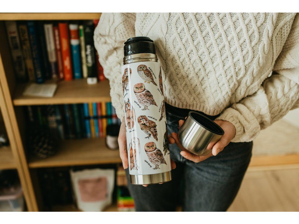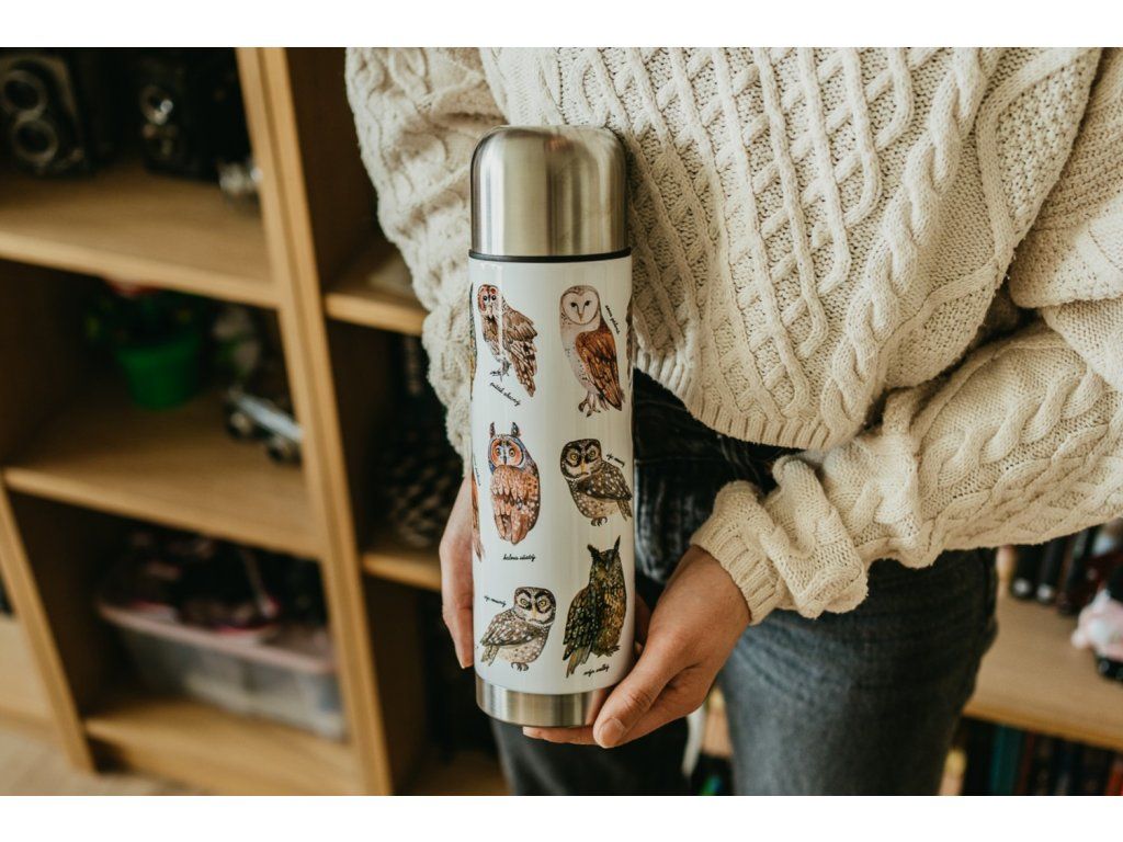 Termoska je potištěná naší autorskou ilustrací českých sov. Ilustrace byly v originále malovány akvarelem a pastelkami.