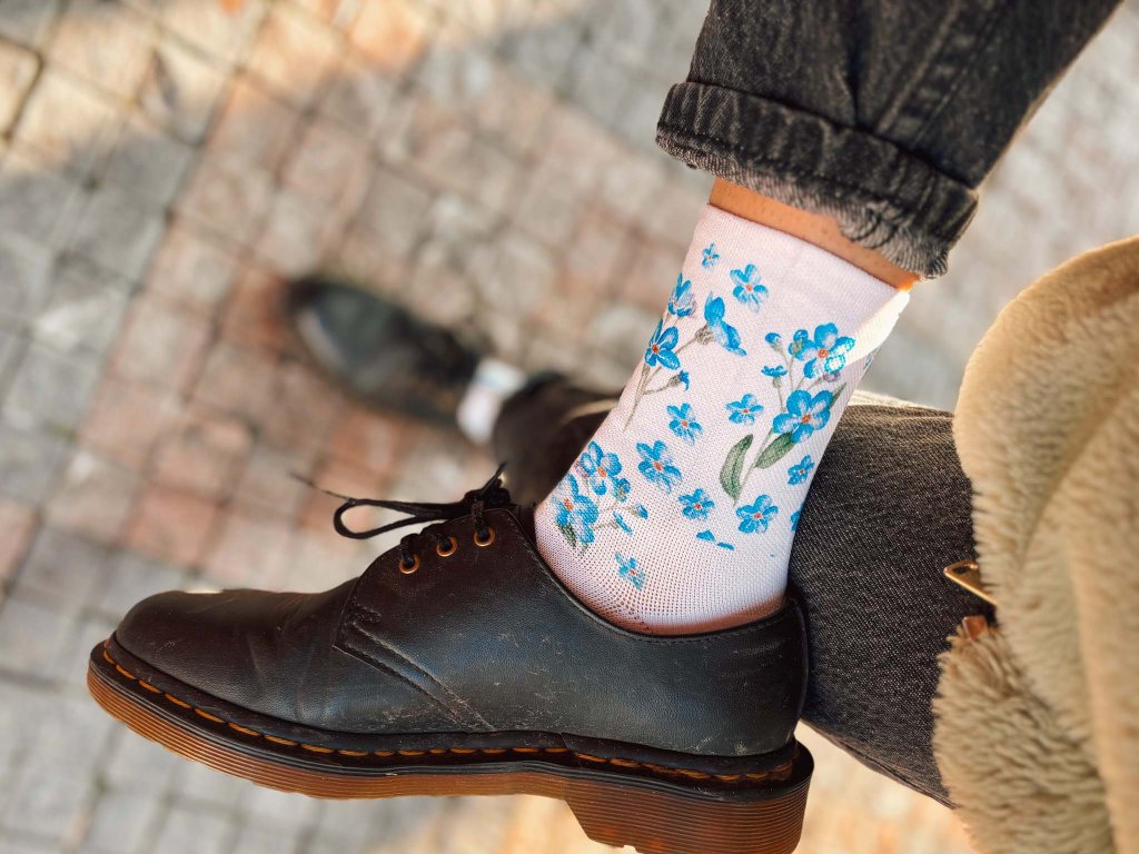Funkční ponožky od české značky Tlapy, které zdobí náš autorský motiv s pomněnkami. Ponožky jsou perfektní na sportovní aktivity i běžné denní nošení. Mají antibakteriální vlastnosti, nezapáchají a jsou prodyšné. V chodidle a špičce mají prodyšnou přízi Drytex antibakterial, která dobře odvádí pot a udrží chodidlo v prodyšném prostředí.