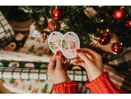 Jmenovka na dárky s autorským motivem myšky zdobící vánoční stromeček, kterou můžete sladit s naším pevným nemačkavým dárkovým balicím papírem ve stejném dekoru. Tento hravý motiv dovede vaše dárečky k dokonalosti. Skrze otvor provléknete stuhu a připevníte na dárek, který tak dovedete k dokonalosti.