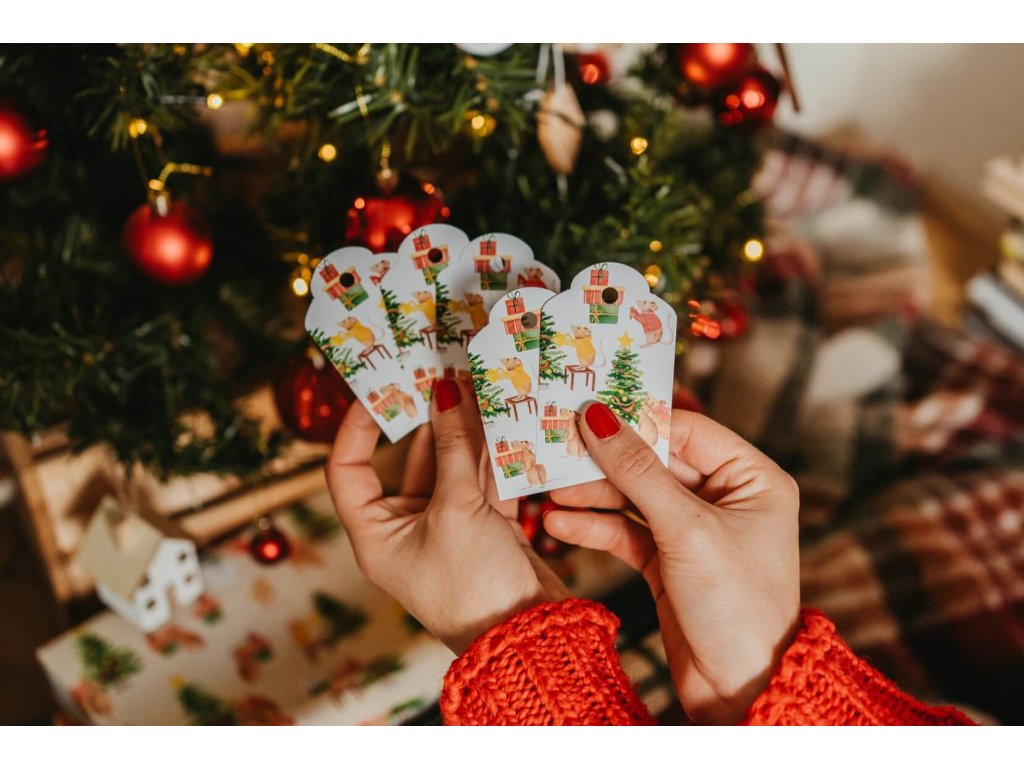Visačky na dárky s autorským motivem vánočních myšek. Jmenovky můžete sladit s naším pevným nemačkavým dárkovým balicím papírem ve stejném dekoru. Tento hravý motiv dovede vaše dárečky k dokonalosti.